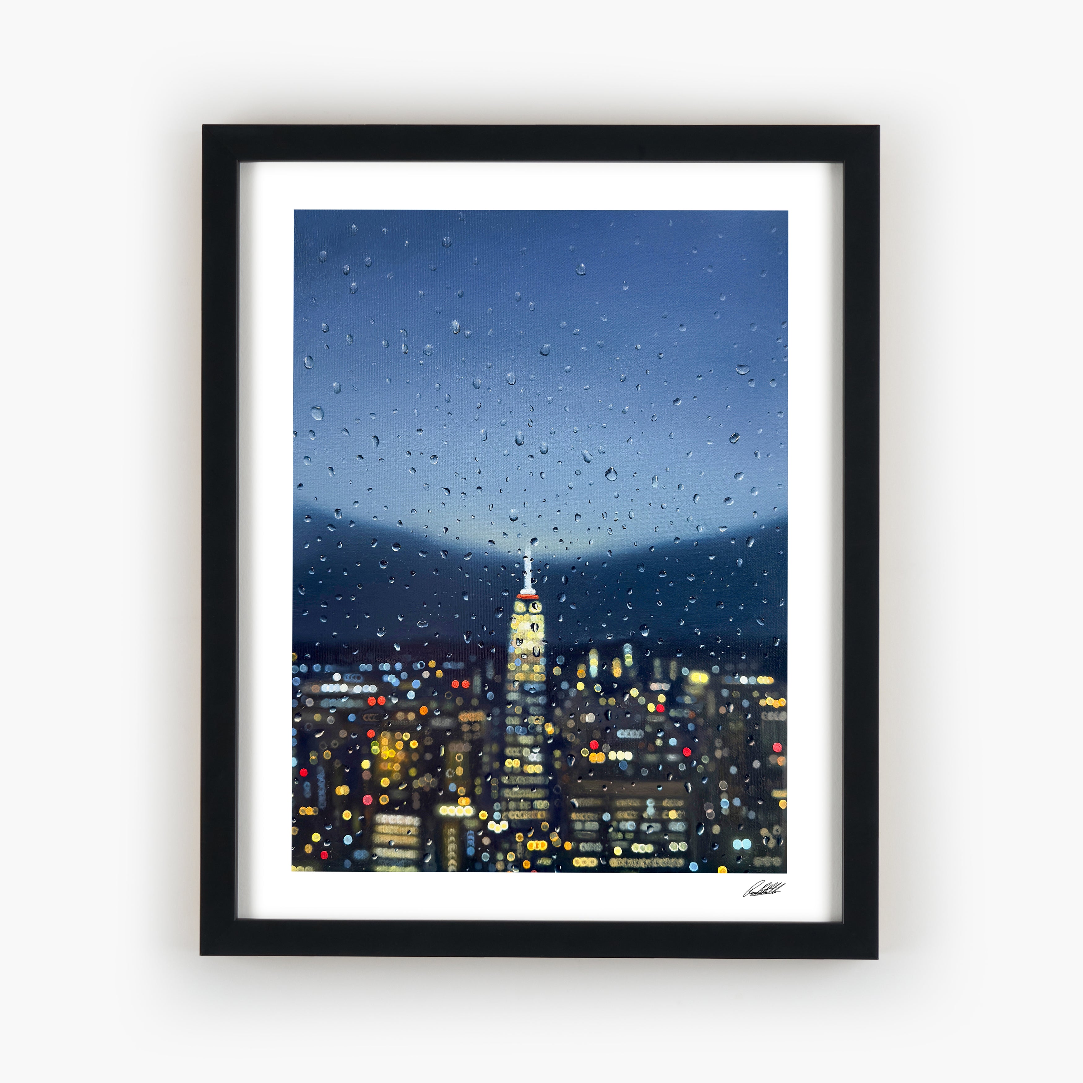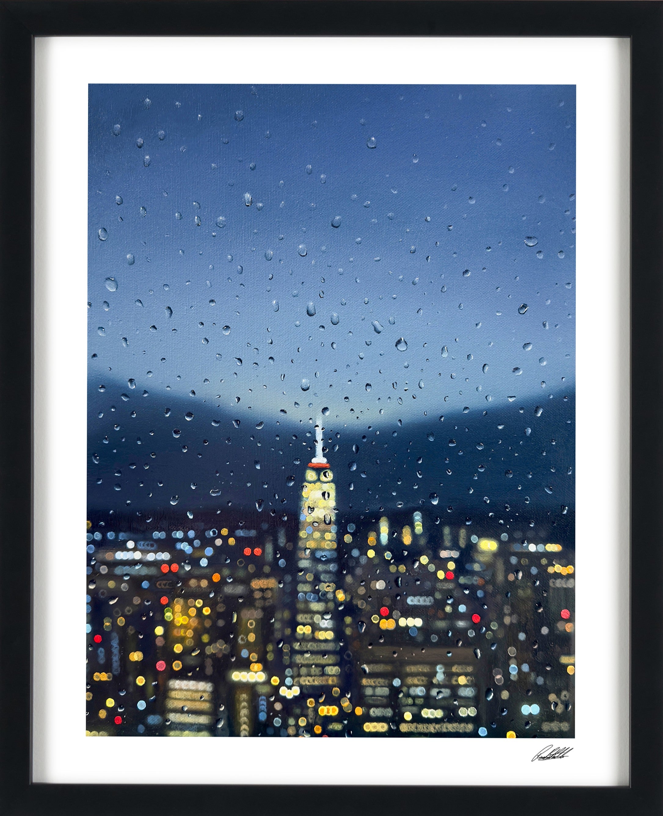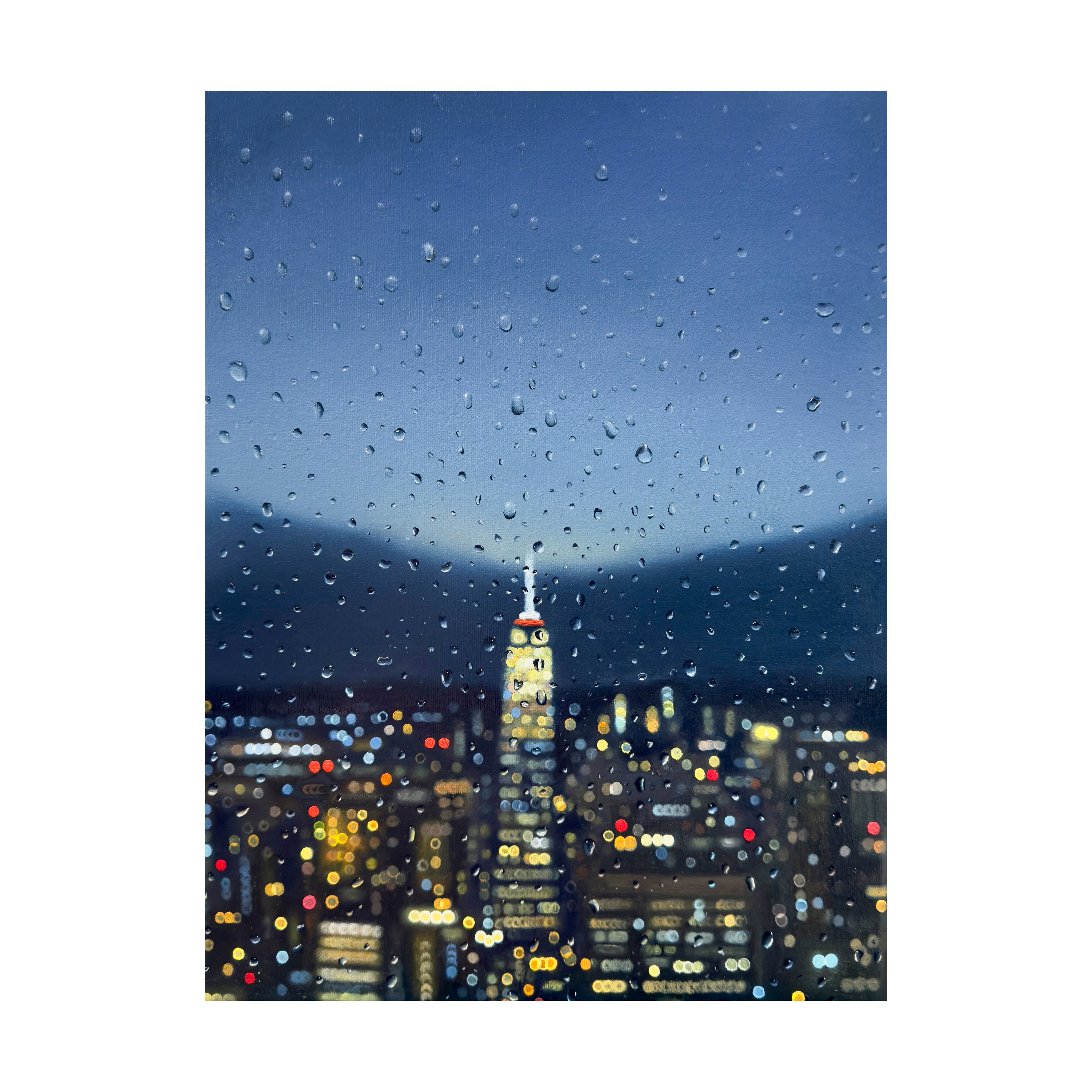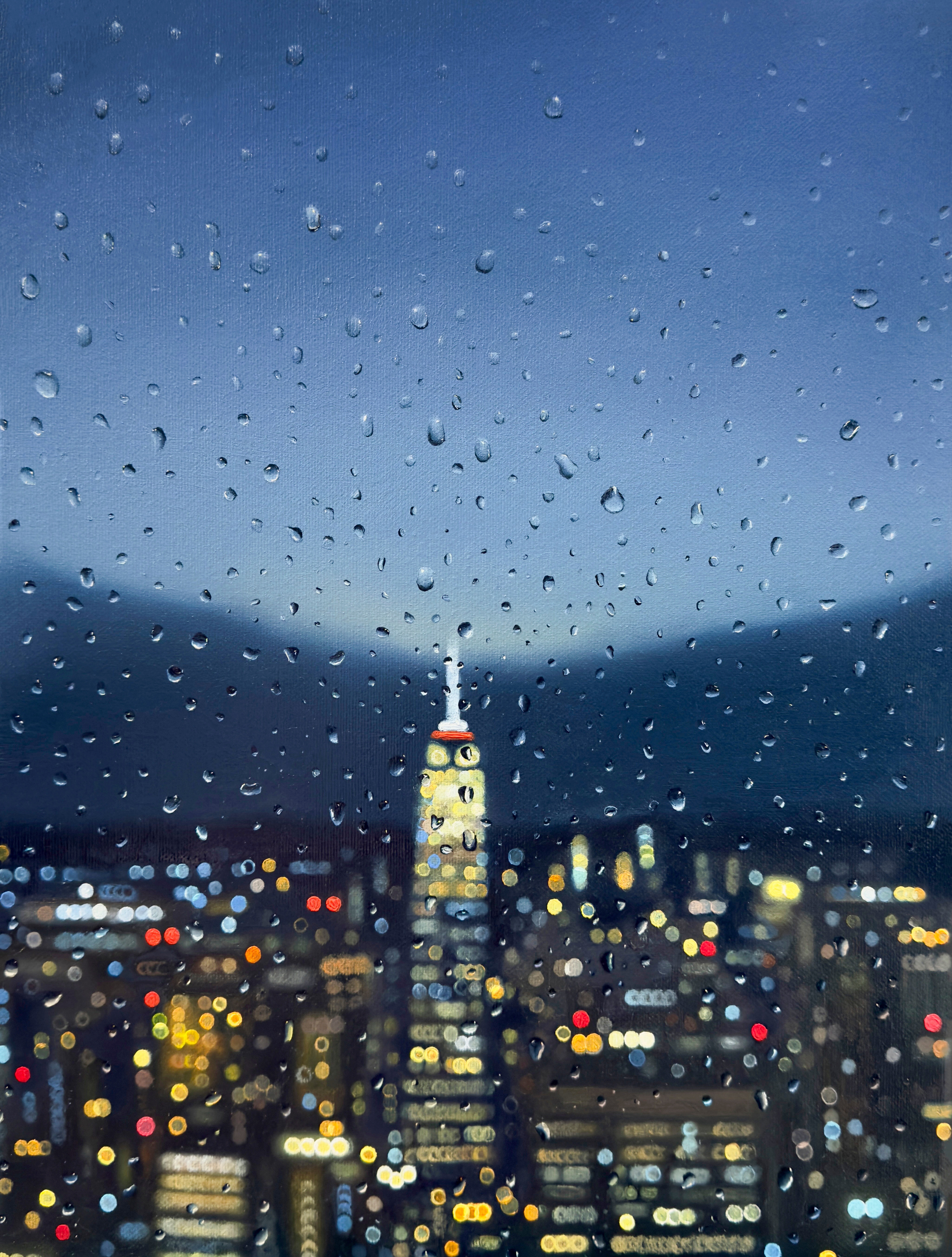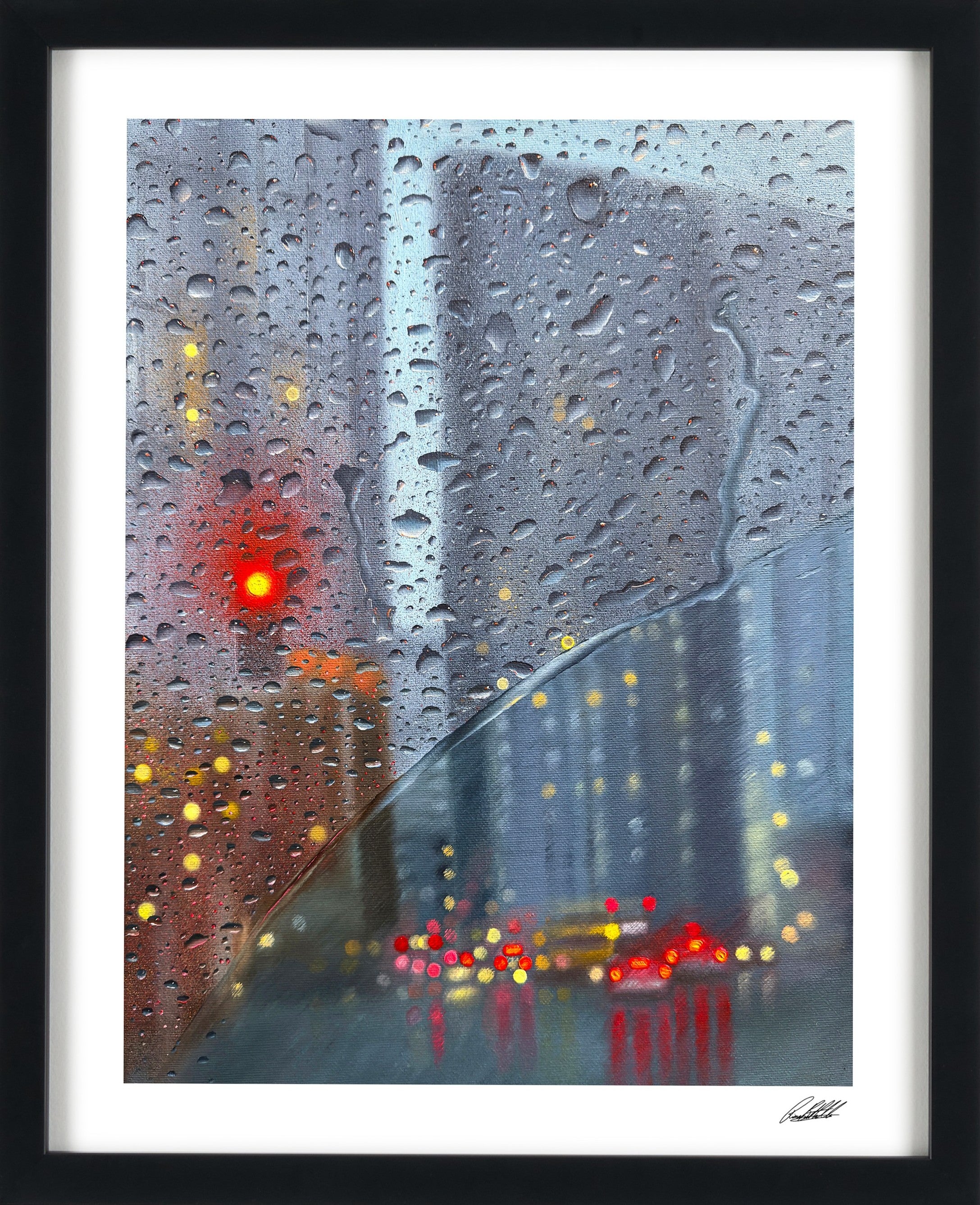 Between Worlds began with a wish to hold the past and the present side by side. In the early pieces, I return to that childhood feeling of sitting in a car on a rainy evening, watching warm yellows and soft blues blur across the window while little doodles formed a secret language we all understood. As the series moves forward, the palette shifts into cooler blues and clearer lights and the viewpoint becomes quieter and more observant. The doodles fade and the focus turns to the stillness that comes with adulthood, where the rain becomes something to notice rather than something to play with.