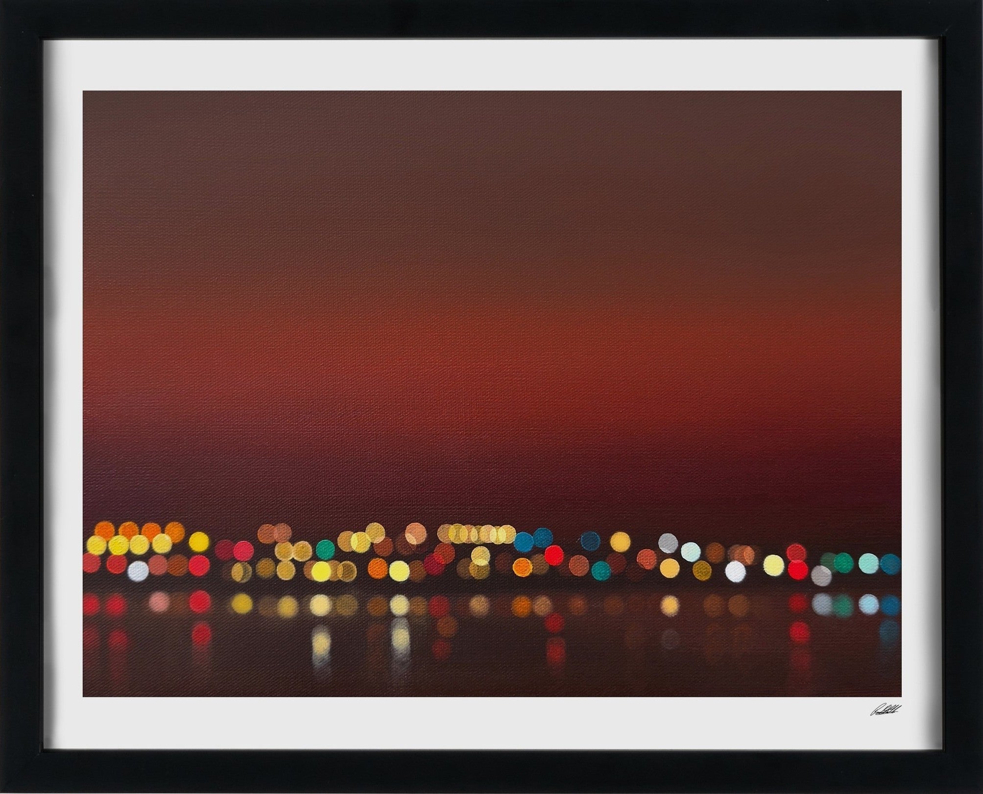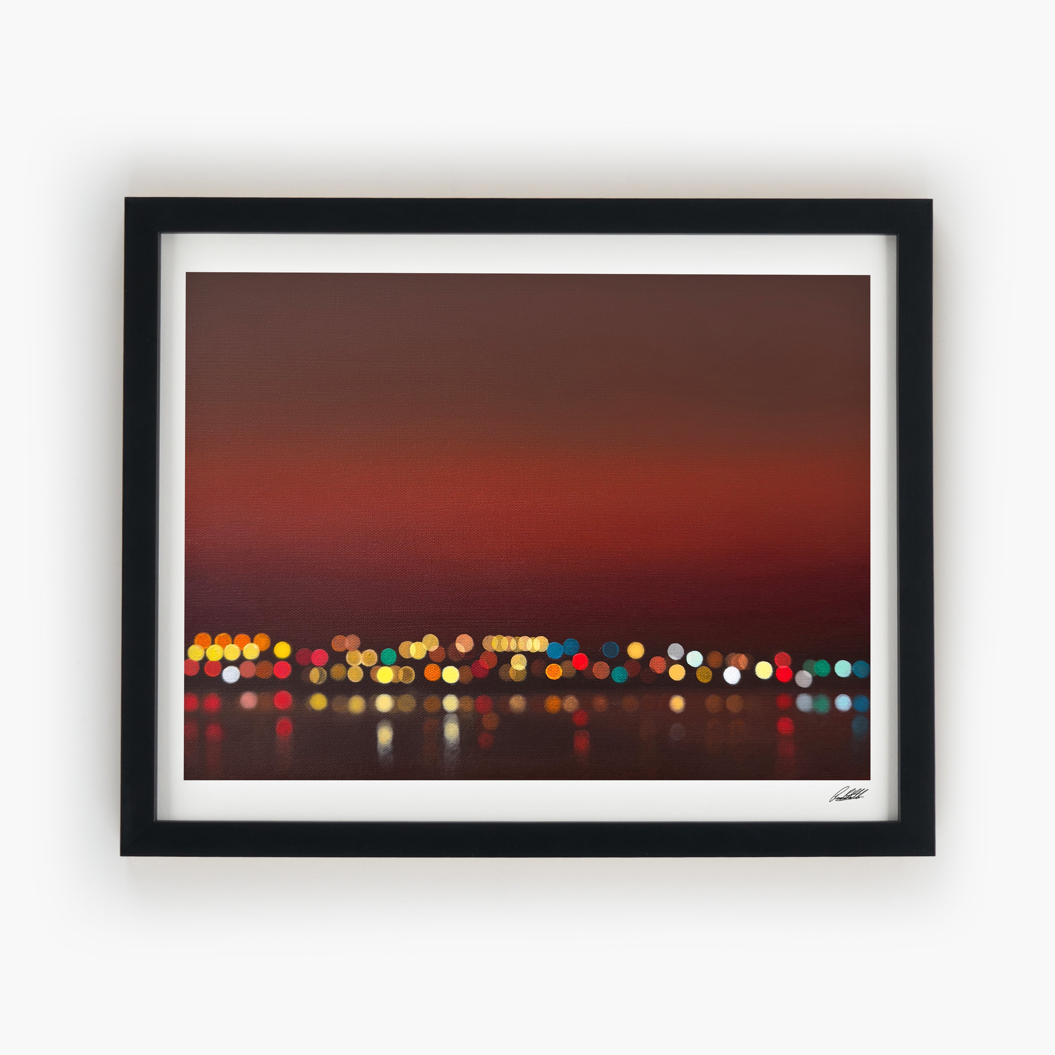 The paintings move between daytime and night, warmer tones and rain, but they all come from the same place. That feeling when the rush has passed, the noise has dropped, and everything feels a little more still.