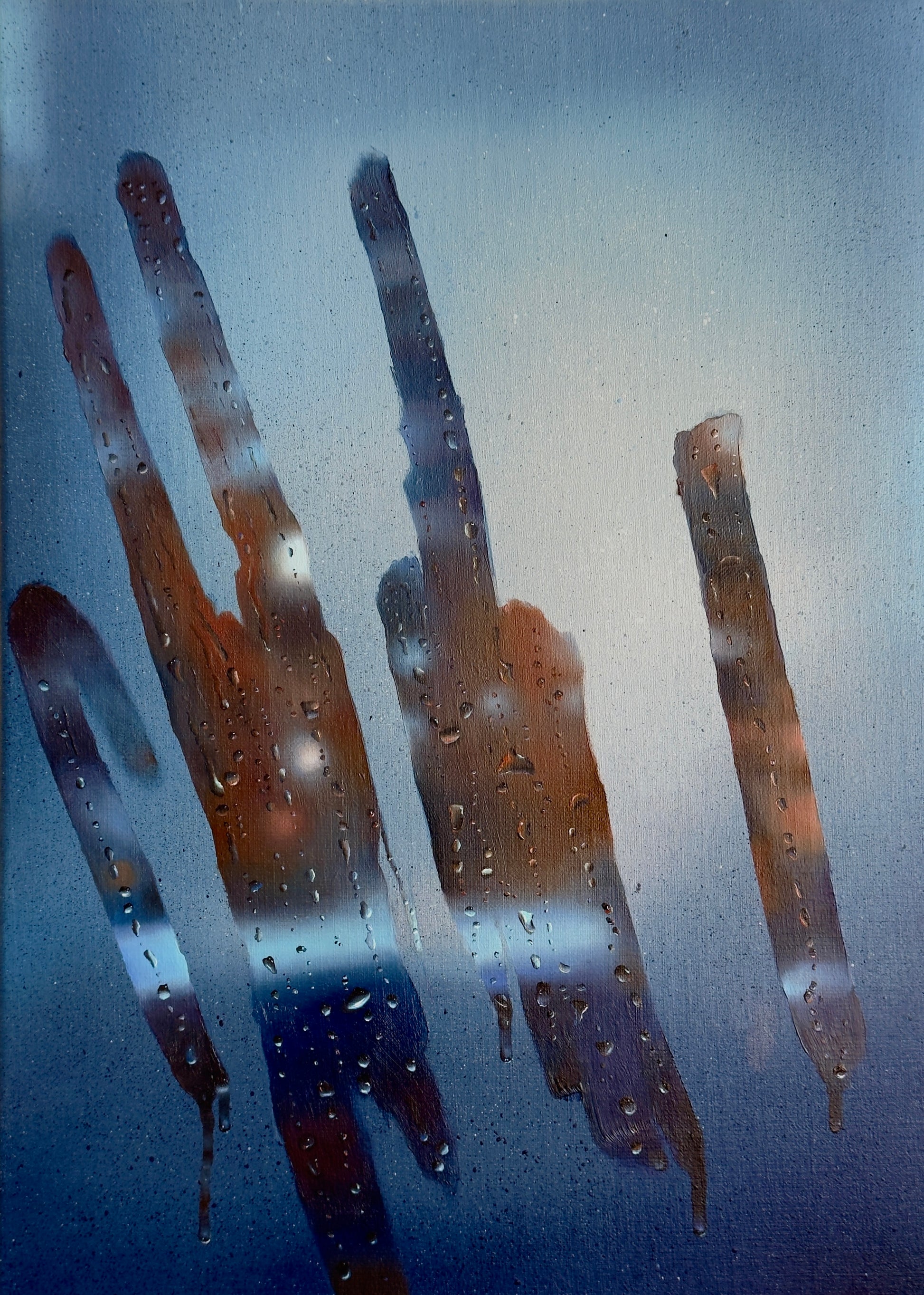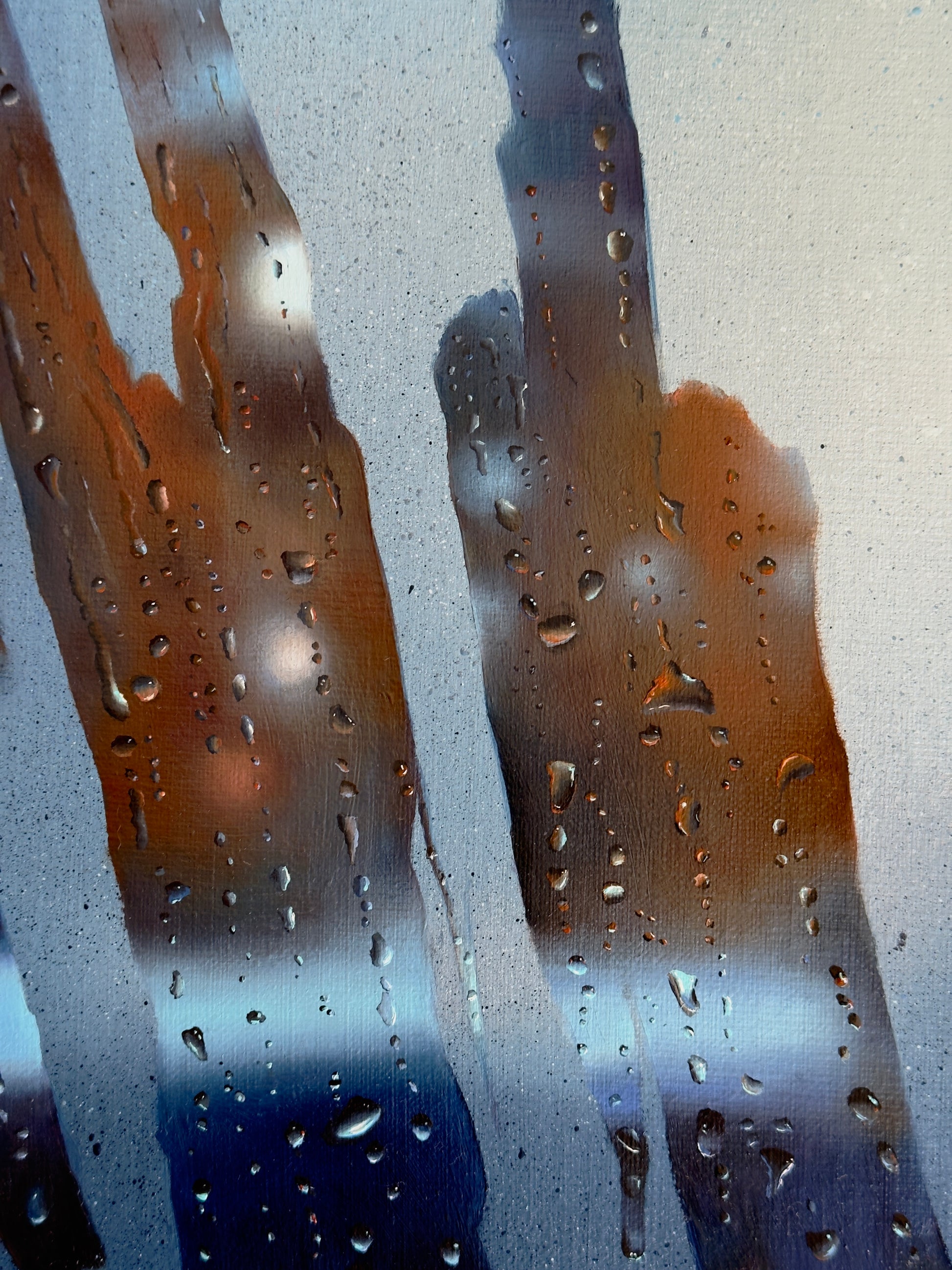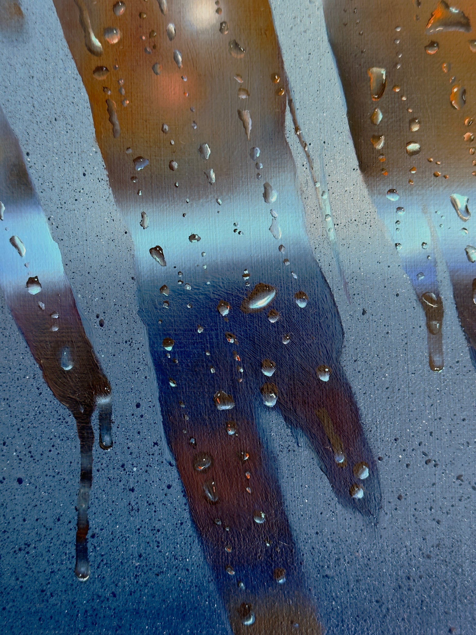 I wanted this painting to feel like a memory of leaning close to the glass on a rainy day, wiping a small patch clear just to see what waited on the other side. The warmth of the light seemed to spill through, softening the edges of everything it touched. It’s that kind of moment where you find yourself drawn closer, almost able to reach the scene beyond, yet still separated by the pane between you. This piece is a companion to Far Enough to See, created from the same setting but with a different perspective.