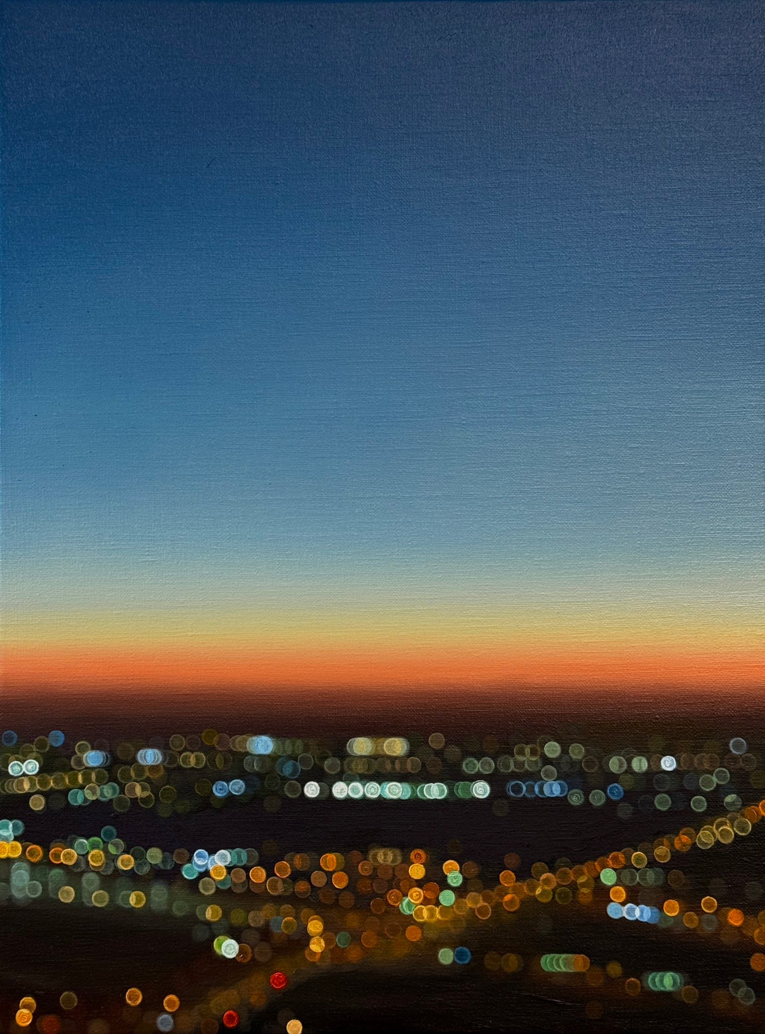 To me this painting feels like late August. The nights start to draw in and it’s no longer bright until 10pm, but in that fading glow the city is still alive with colour. I wanted to hold onto that feeling of light that lingers even as the season begins to shift.