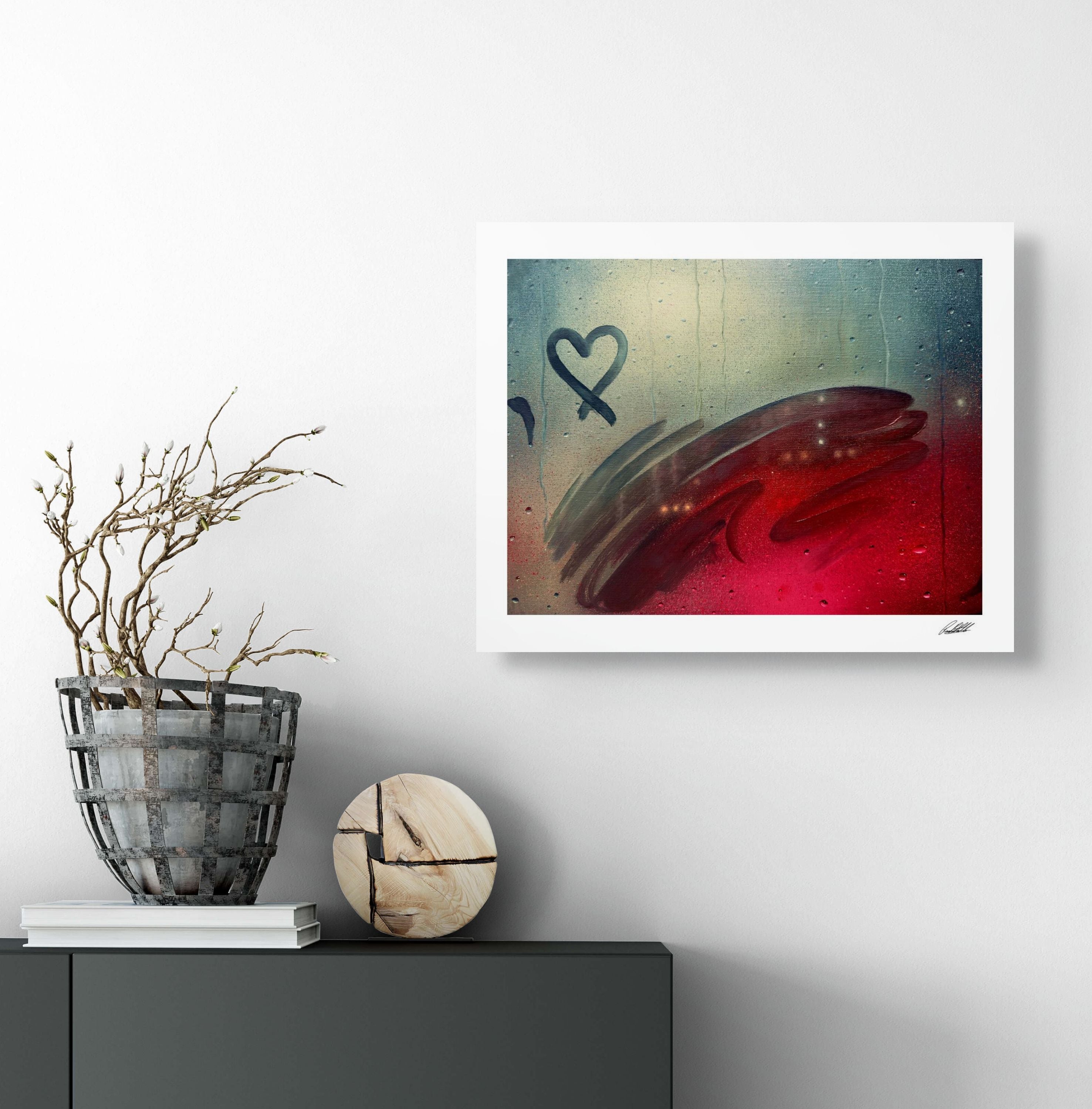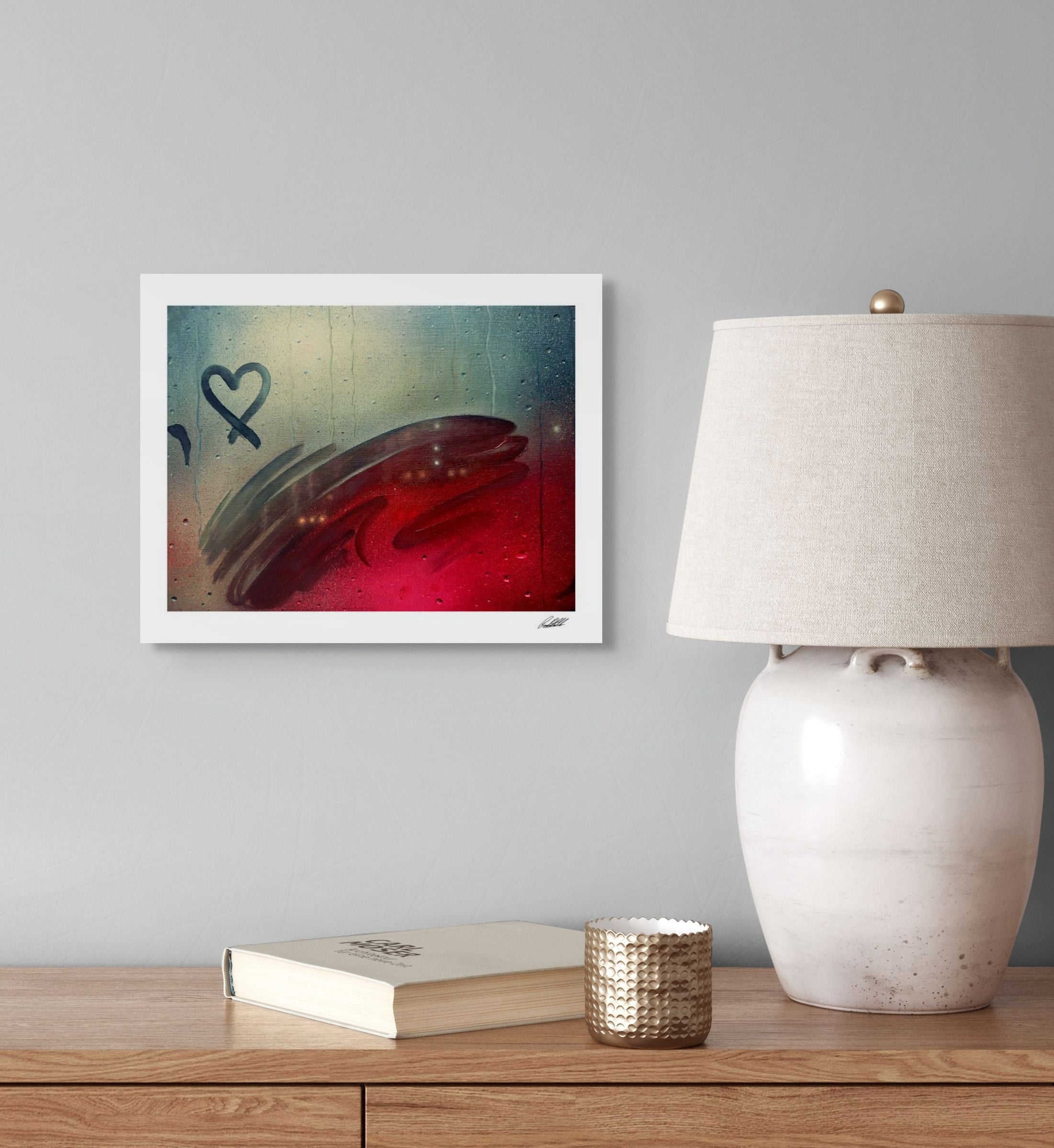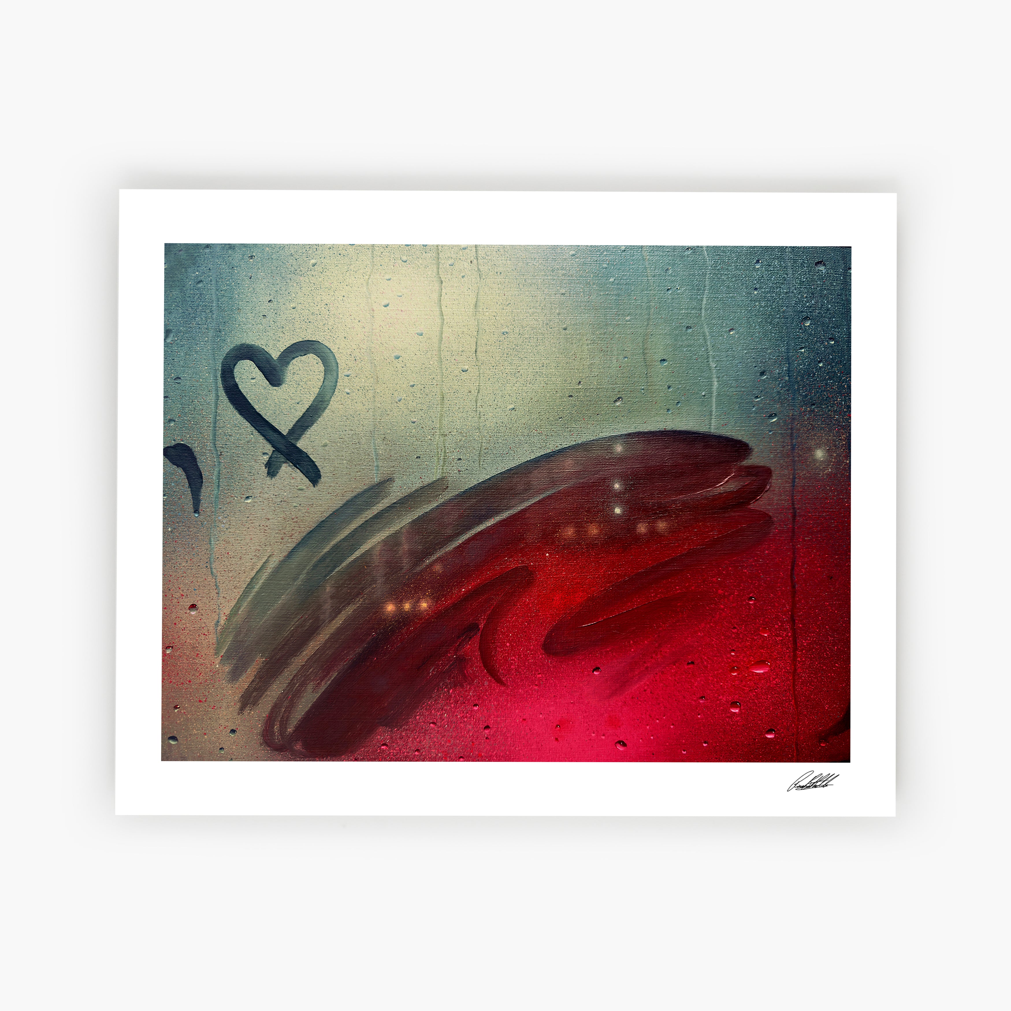 This piece sits in that space where childhood feels brighter than real life ever could. I pushed the greens and reds into deeper, more saturated tones because that is how those memories live in my mind, full of colour and intensity. The small heart on the glass is a quiet reminder of the simple marks we all used to make, turning rainy windows into something playful without even thinking about it. While I painted it, I felt myself step back into that vivid world where everything seemed louder in colour and softer in meaning. I hope it brings the viewer into that same space, somewhere between memory and feeling.