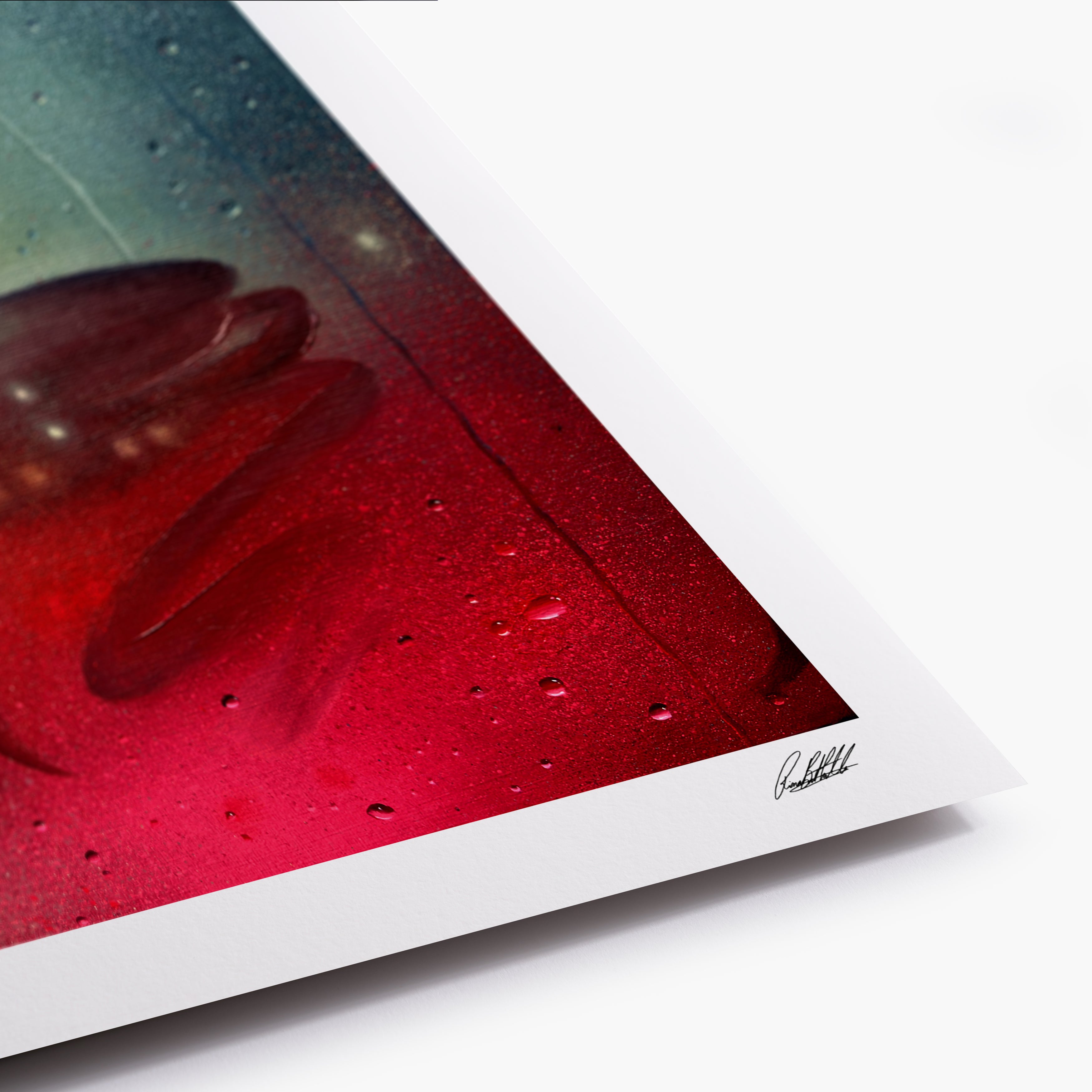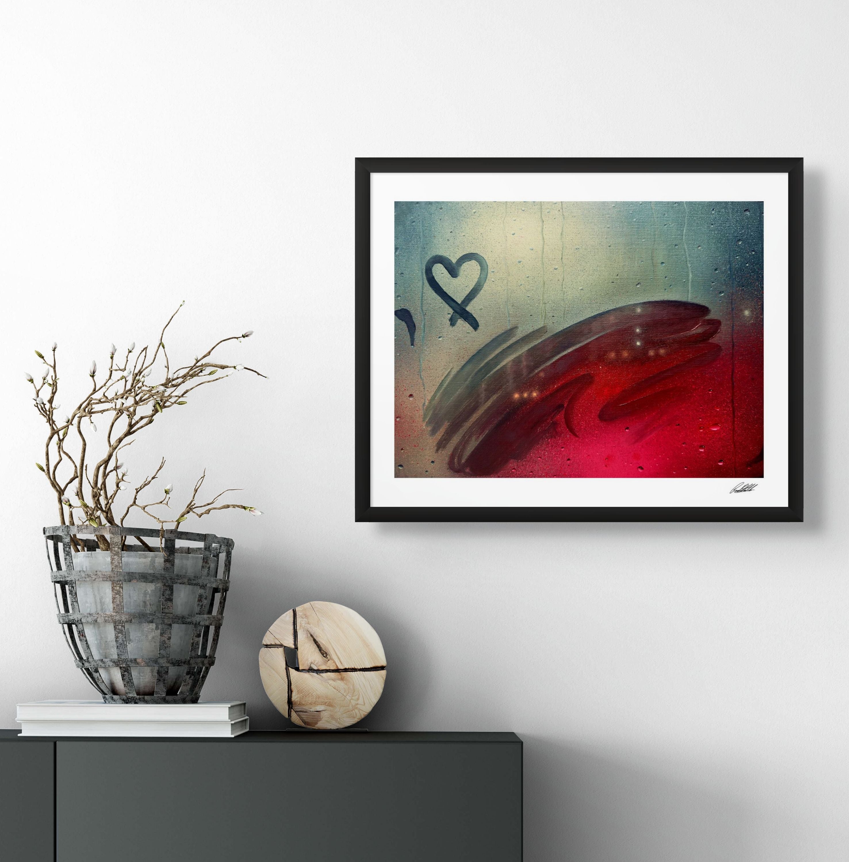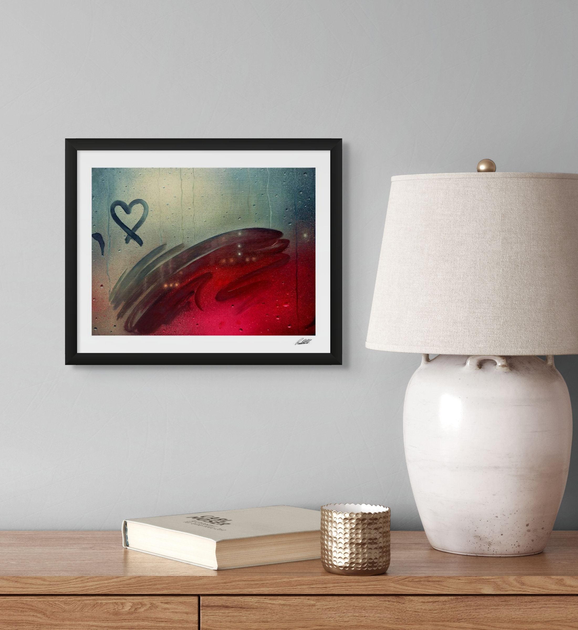 This piece sits in that space where childhood feels brighter than real life ever could. I pushed the greens and reds into deeper, more saturated tones because that is how those memories live in my mind, full of colour and intensity. The small heart on the glass is a quiet reminder of the simple marks we all used to make, turning rainy windows into something playful without even thinking about it. While I painted it, I felt myself step back into that vivid world where everything seemed louder in colour and softer in meaning. I hope it brings the viewer into that same space, somewhere between memory and feeling.